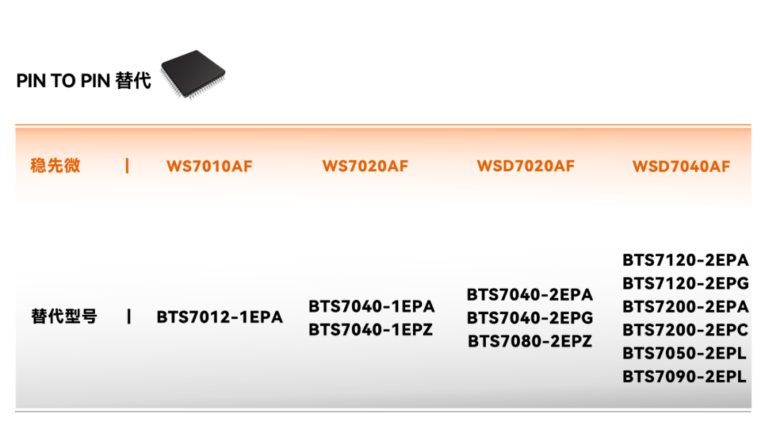 新產(chǎn)品采用單芯片設(shè)計(jì),具有高可靠、高性能、高穩(wěn)定的產(chǎn)品特性并適用于12V汽車平臺(tái)。與WS7xxxAD系列不同之處是WS7xxxAF采用了DFN5×6-14L封裝,擴(kuò)大了該系列產(chǎn)品的兼容廣度,獲得了與會(huì)觀眾的廣泛關(guān)注和熱烈反響。